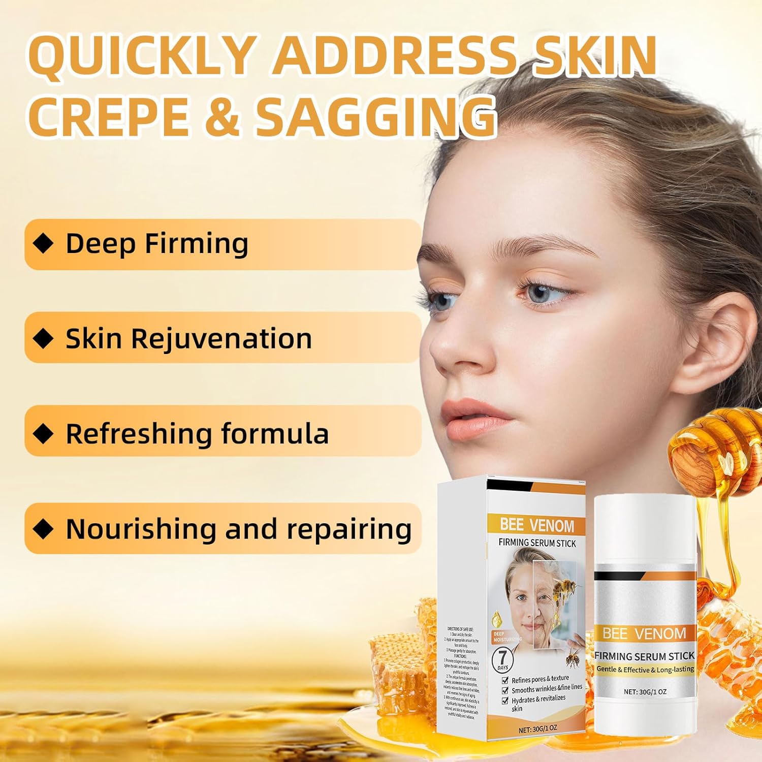 - Anti-Aging Firming Cream: Our bee venom firming serum stick is infused with potent bee venom, known for its ability to stimulate collagen production and improve skin texture.